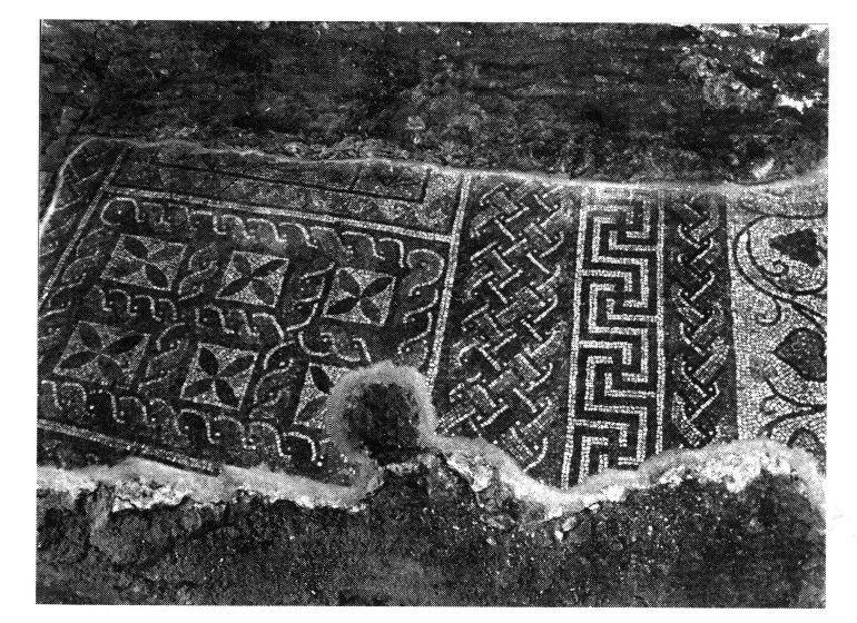 En 1997, on a poursuivi la fouille des thermes romains situés au lieu-dit Loutro, dans le terrain D. Panagopoulos, et découvert un second bâtiment (« bâtiment 2 »), au Sud-Ouest des bains, dont il ne reste que trois pièces, rasées au niveau des fondations. Un des sols était orné d'une mosaïque fragmentaire (2,80 x 1,20 m) à motifs géométriques et végétaux (fig. 1). À l'Ouest du « bâtiment 2 », on a dégagé une résidence de dix pièces (« bâtiment 3 ») où l'on distingue plusieurs états. Il semble que les trois bâtiments formaient un ensemble, et que les bains et le « bâtiment 2 », avec ses portiques et ses pièces richement ornées de mosaïques et de statues (v. AD 44 [1989] Β'1, p. 108 ; 50 [1995] B'1, p. 172), étaient des dépendances du « bâtiment 3 ».