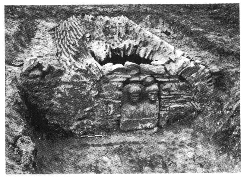 En 1998, des travaux d'aménagement dans la nécropole antique (v. BCH 122 [1998] Chron., p. 858-859) ont amené la découverte de 100 nouvelles tombes à tuiles et en fosse, pour la plupart sans mobilier funéraire. La présence d'une abondante céramique commune et de trois pithoi in situ, découverts au cours des travaux, confirme le caractère domestique de cet espace à l'Âge du Fer. À l'extérieur du site archéologique (champ Doulkéridi) des travaux agricoles ont mis au jour une tombe voûtée dont l'entrée avait été fermée par une stèle funéraire d'époque romaine ornée de deux figures en relief (fig. 162). AD 53 (1998) [2004] B'2, p. 586 [Th. Savvopoulou].