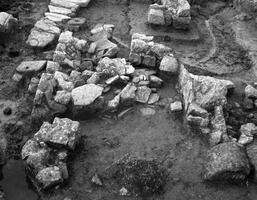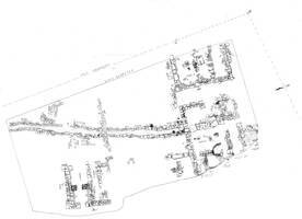28 walls were discovered, a stone pipe, clay structures, and pebble floors, which belong to different periods. The NE section of the plot remained unexcavated.