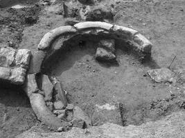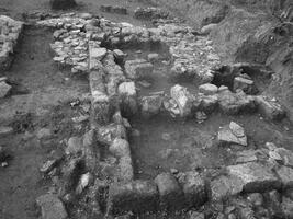 In between Areas A and B, there was a destruction area of crushed stones, as well as tile fragments, pits and sherds. The concentration of the area was around 6 x 10m. Large quantities of unpainted ceramics were found across the whole site, as well as 18 glass objects. The quantity of lead found at the site was remarkable, including tools, pins, and buckles. 15 bronze objects were also found, and 13 local coins.