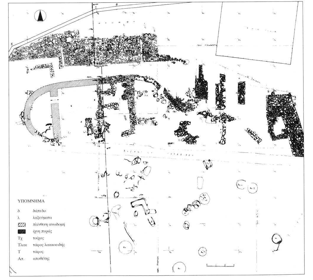 Quinze fouilles d'urgence ont été menées à bien par la IXe Éphorie des antiquités préhistoriques et classiques en 1997, dont les résultats, que nous résumons ci-dessous, sont publiés dans AD 52 (1997) [2002] B'1, p. 353-370 [V. Aravantinos, E. Koundouri].