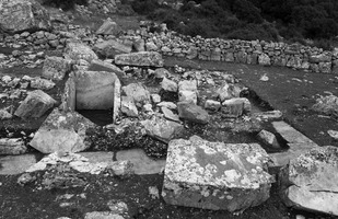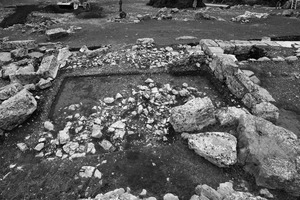 Excavation proceeded via a grid of 5x5m squares, covering 1200 sqm, from which 350 sam were excavated. All soil removed was dry sieved.