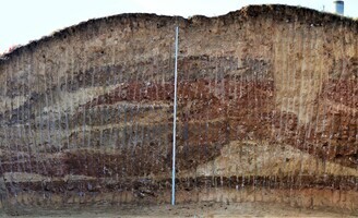 On a procédé à une documentation systématique de la stratigraphie de parois artificielles dans la partie centrale du tumulus. Plusieurs phases de la constitution du tumulus ont été observées. On a par ailleurs constaté que le remplissage des creusements/galeries antiques avaient été effectué avec un matériau qui a permis sa conservation et sa stabilité.