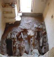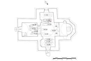 During excavation inside the church, a total of eighteen graves were found (Fig. 1). These were cist and pit graves, with and without cover slabs. The sides of the graves were reinforced with irregularly shaped stones placed perpendicular in the ground (Fig. 2). Inside the graves, bones were found (but degraded due to moisture). Dating the graves is difficult, due to a lack of associated finds.