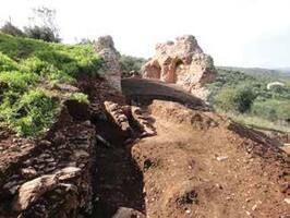 Excavations revealed the E side of the building as well as part of the floor, decorated with a mosaic. Its area covers 6.75 sqm, and includes N and S niches probably used for burials.