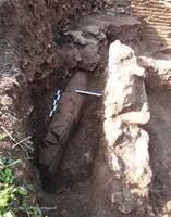 A short distance from the building a cist grave was discovered, 1.95 x 0.46m, oriented EW (Fig. 1). 0.3m to the E was another tiled-roof grave, oriented EW (Fig. 2). Pottery found in the excavation was dated to the Roman period; glass fragments were also found.