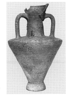 Parmi le matériel céramique recueilli, qui s'échelonne entre le VIIIe et le Ve s. av. J.-C. et appartient à des types déjà connus par les campagnes précédentes (v. BCH 122 [1998] Chron., p. 874), on signale une coupe attique à figures noires, deux amphorisques provenant sans doute d'ateliers de la Grèce de l'Est (fig. 1), un canthare fragmentaire (G2-3) de la 1re moitié du VIIe s. av. J.-C., de type connu dans l'Egée du Nord, un cratère laconien à vernis noir et l'embouchure trilobée d'une œnochoé phénicienne. À noter aussi une terre cuite architecturale fragmentaire ornée de moulures et d'une palmette, qui provient peut-être d'une sima et suggère la présence de bâtiments plus monumentaux.
