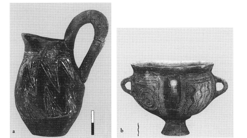 En 2000, la nécropole du BR repérée en 1998 au lieu-dit Kokkina Vrachia (v. BCH 123 [1999] Chron., p. 774) a fait l'objet de trois sondages. Deux périboles (ca 3 x 4 m et 0,60 m de haut) ont été mis au jour, ainsi que les restes d'un troisième. Ils renfermaient des inhumations successives, mais apparemment aussi des crémations*. Le mobilier associé comprend des vases décorés d'incisions remplies de matière blanche ou jaune (fig. 1a-b), typiques du BR IIIB-C de la Macédoine centrale et orientale.